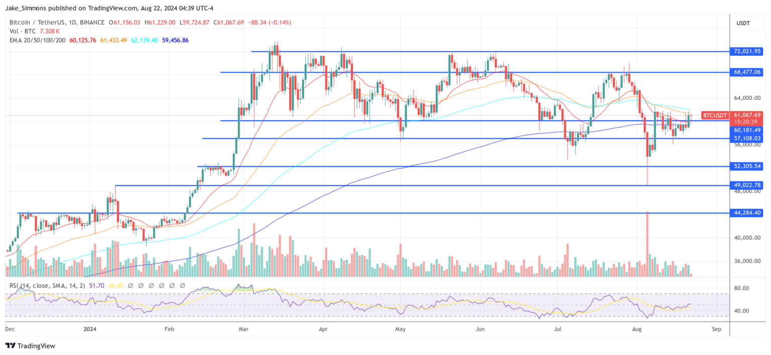 He emphasized the Democratic National Convention’s perceived shortcomings and an expected endorsement of Trump by Robert F. Kennedy Jr. as pivotal moments that could drive the Bitcoin price. “The DNC does not appear to be going particularly well. RFK is supposed to be endorsing Trump on Friday. These factors are showing up on Polymarket and if RFK goes for Trump, I would guess Poly would widen out further,” Kling noted. He anticipates these developments will peak on September 10.