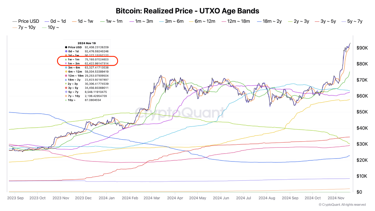 According to tugbachain, the realized price levels for one-month and three-month periods often serve as critical zones during bull market corrections.