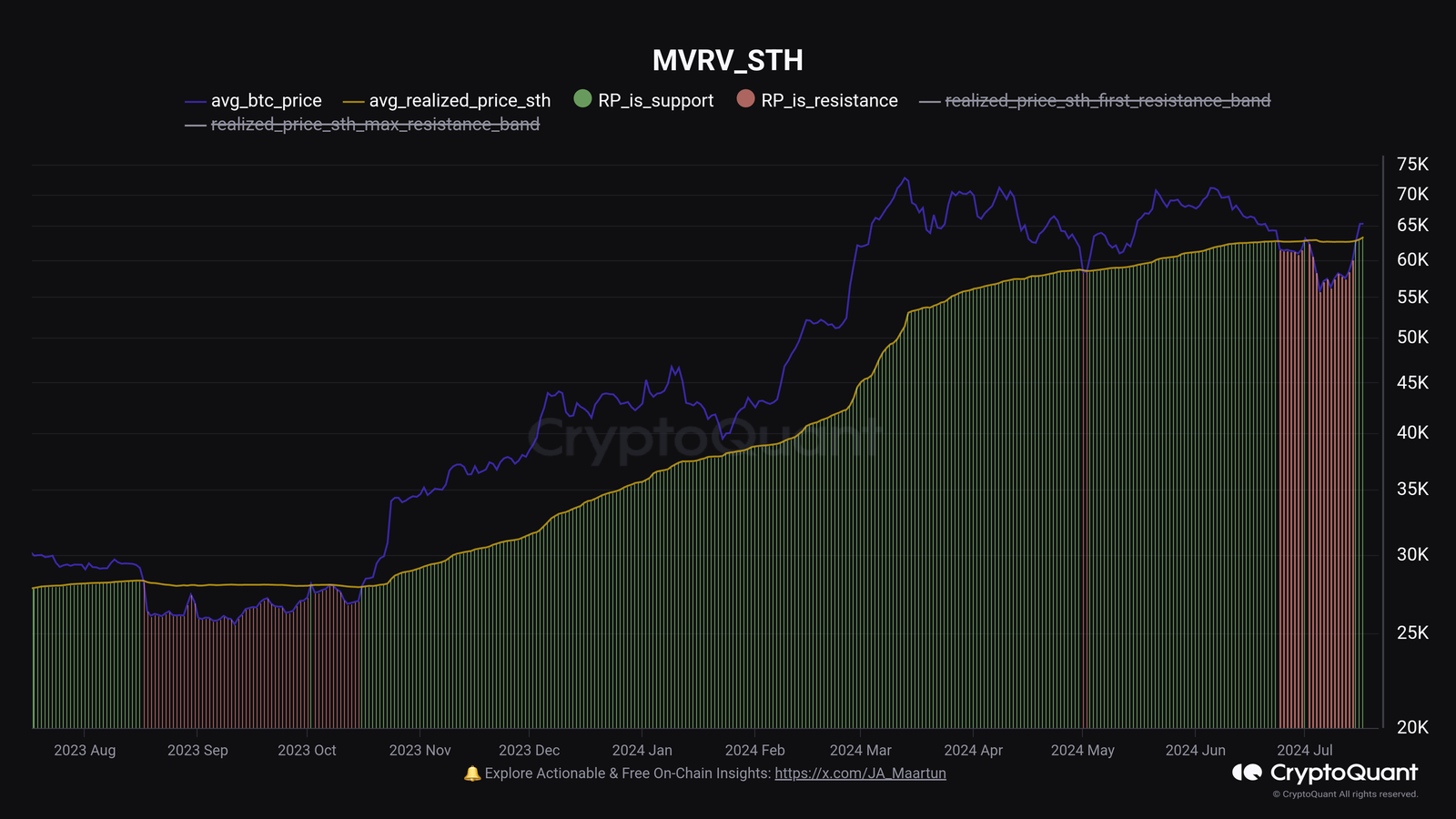 In the context of the current discussion, the Realized Price of the entire userbase isn’t of interest, but that of only a part of it: the short-term holders (STHs). The STHs refer to the Bitcoin investors who purchased their tokens within the past 155 days.