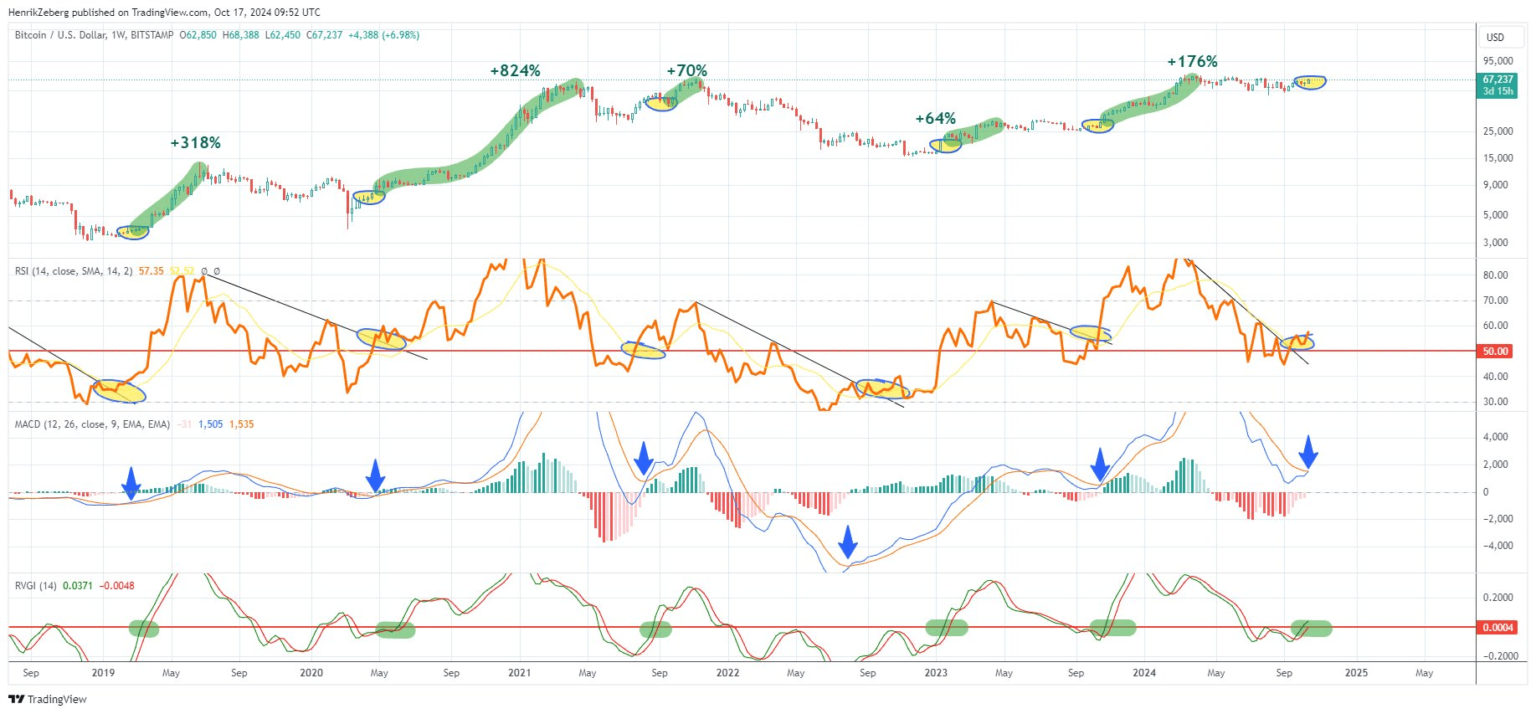 Henrik Zeberg, a macroeconomist known for his expertise in business cycles, has pinpointed an upcoming rally of at least 60% for the Bitcoin price in his latest technical analysis. The seasoned analyst has identified a pattern across three critical technical indicators that have historically signaled major upward price movements when all aligned.