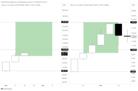 Crypto analyst Tony Severino drew parallels of Bitcoin’s recent price movements to its 2017 surge. The Bitcoin price first broke before the round figure mark of $10,000 in the last week of November 2017. Now seven years later, it is exhibiting similar price movements as it looks to break above the next round figure mark of $100,000.