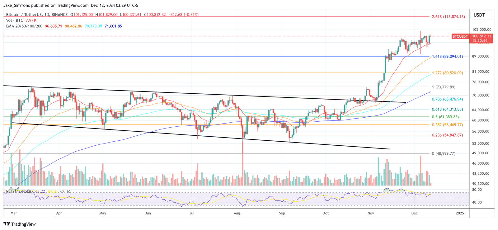 At press time, BTC traded at $100,812.