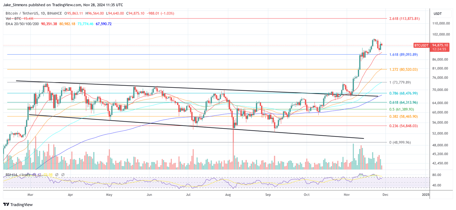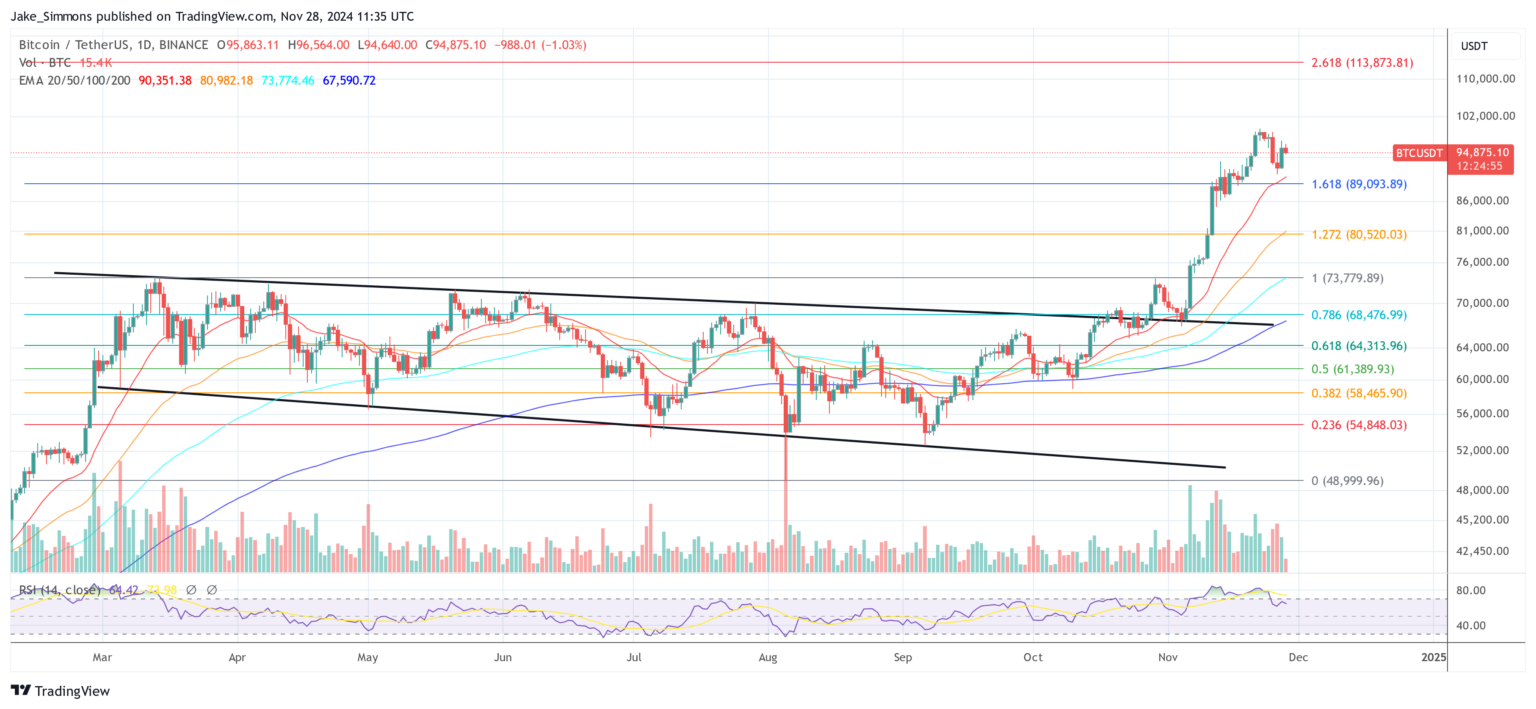 At press time, Bitcoin traded at $94,875.