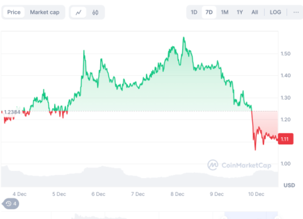 Since the middle of November, the price has consistently increased, but its value has declined in the past few days by 9.7%, down to $1.11. However, from what we’re seeing, this seems to be an industry-wide downturn and not one specific to $PNUT.