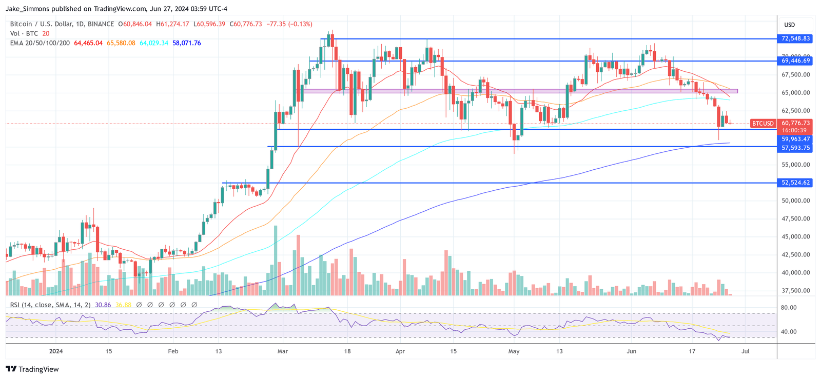 At press time, BTC traded at $60,766.