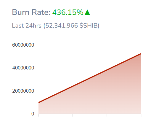 According to data from Shibburn, Shiba Inu’s token burn rate surged by 436% over the past 24 hours, resulting in the permanent removal of hundreds of millions of SHIB tokens from circulation. Data shows that 52.3 million SHIB tokens were burned in the past 24 hours.