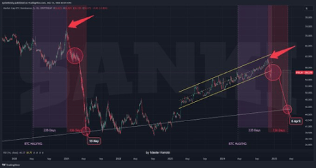 In line with this, the analyst remarked that the timeline for the bottom in the Bitcoin price dominance (which would also mark the peak for the crypto market) can extend beyond April 20 to April 23, 2025. Master Kenobi cautioned that the exact date for the market peak cannot be pinpointed at this moment.