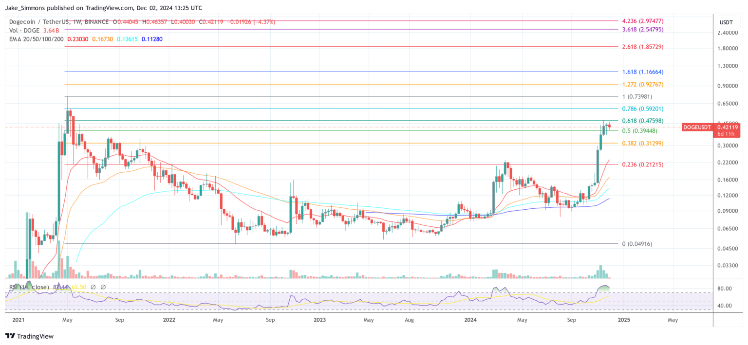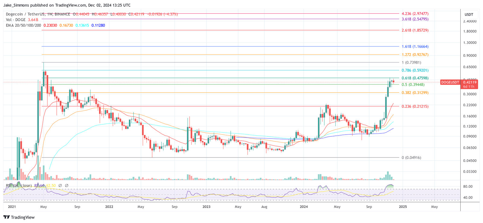 DOGE price, 1-week chart | Source: DOGEUSDT on TradingView.com